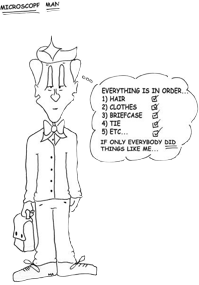 Who is Microscope Man? This is the guy who is forever seeing the one piece of white lint on the black shirt of life! He expects the world to be in perfect order, and can be critical of anything and anyone who does not match his meticulous standards.